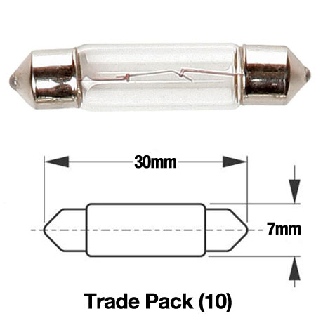 RING 24V 3W S6D 7MMX30MM FESTOON BULB TRADE PACK 10