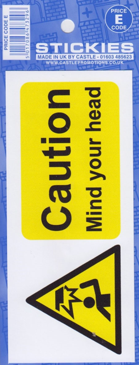 CASTLE CAUTION MIND YOUR HEAD STICKER